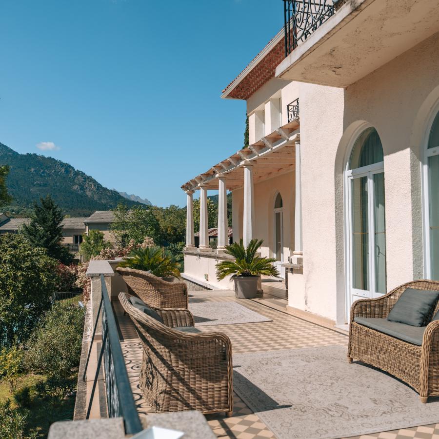 À dix minutes à pieds du centre ville, Si Mea offre une vue imprenable sur les deux vallées Restonica et Tavignano et sur Corte et sa citadelle.